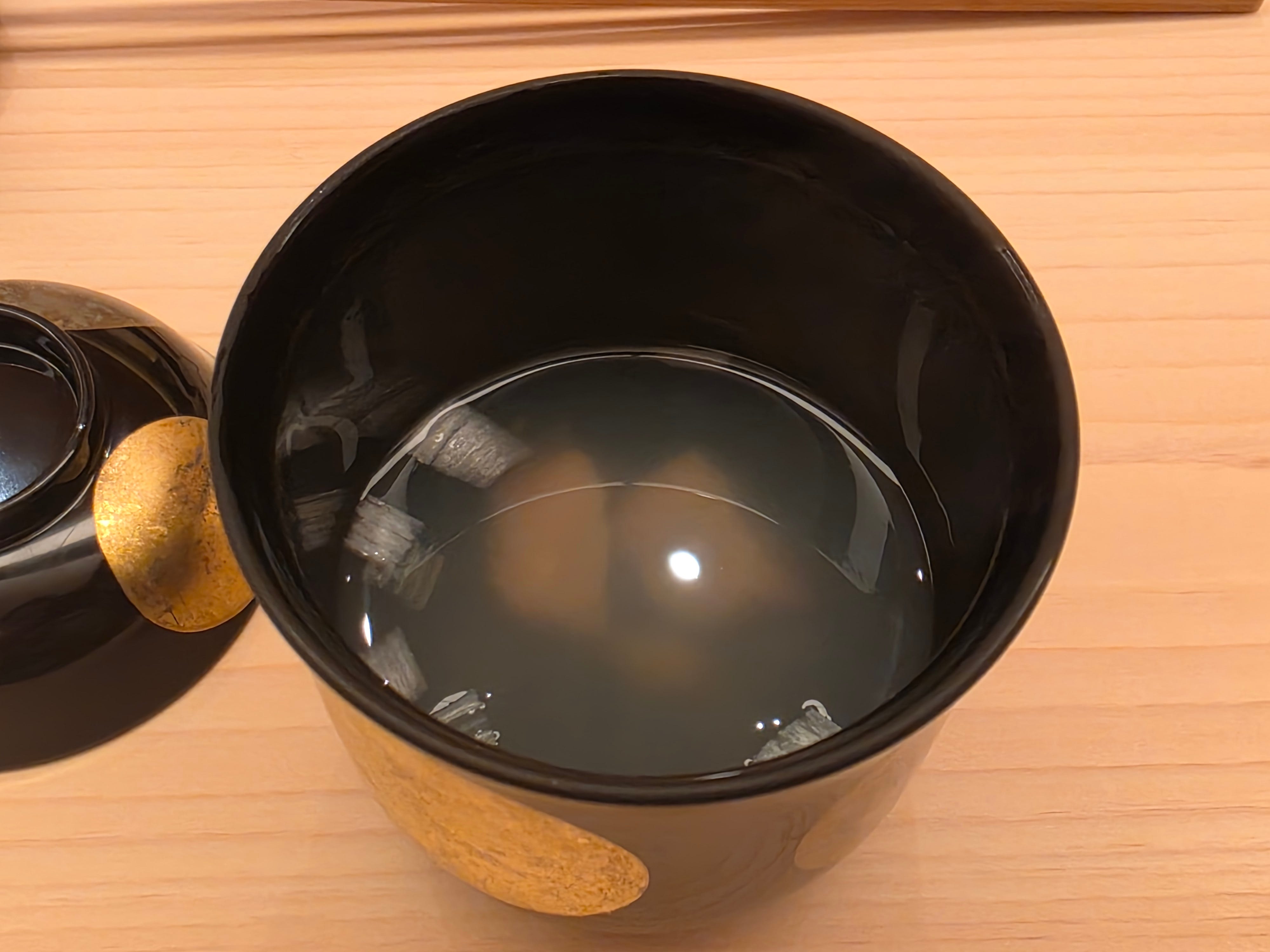 Bringing things to a close, a clear briny clam broth instead of a usual miso soup.