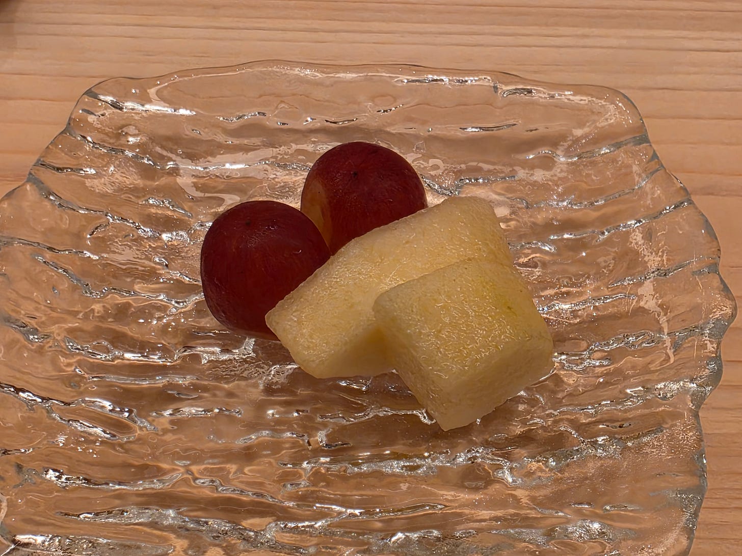 As always with Japanese fruit, intensely sweet grapes and melons. One of two pieces is really all one can handle in a sitting.