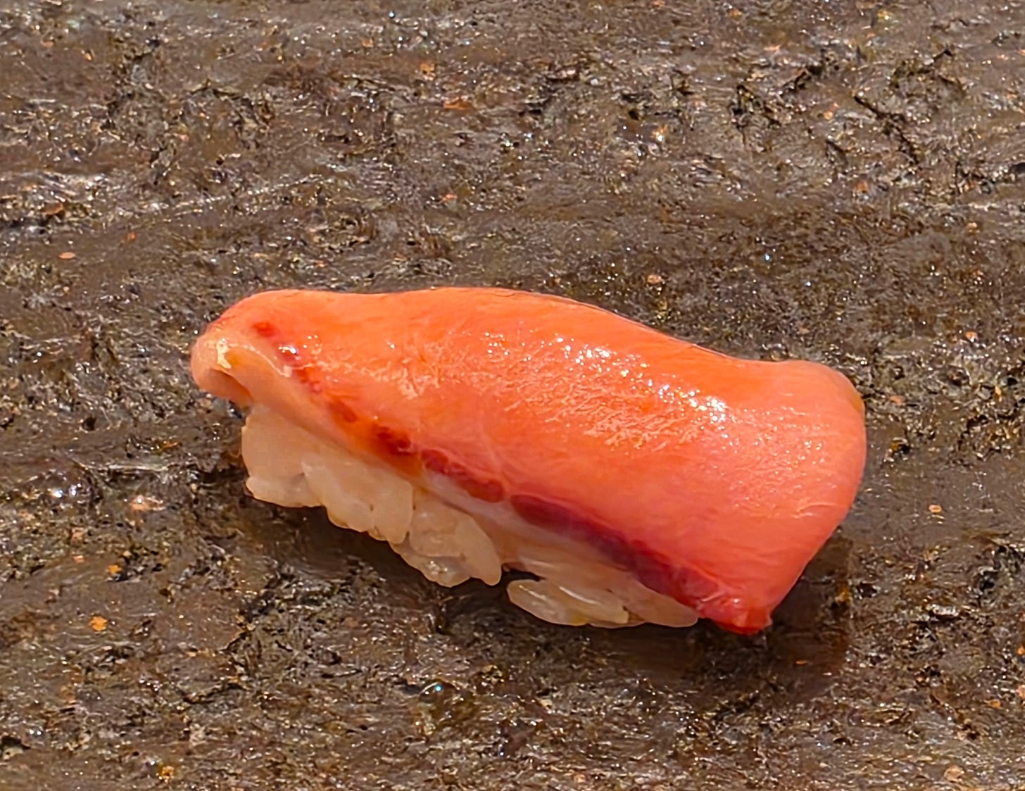 The chutoro came next, the fatty cuts from the side of the belly, sliced on the bias so it falls apart in the mouth, one of the few times I really enjoyed the chutoro cut. Interestingly, we skipped the otoro fat bomb.