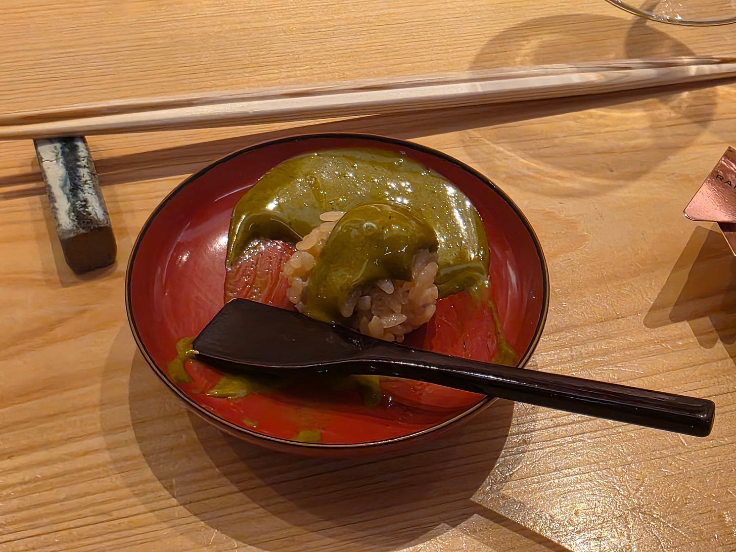 Chef Kaki is a staple behind the sushi counter every night and engages warmly with guests, explaining the intricacies of his craft and sushi etiquette during the omakase experience. Chef Kaki’s expertise lies in his mastery of aging and marinating the fish to enhance its flavors. His signature dishes, such as sake-steamed Shimane abalone with a velvety liver sauce, showcase his ability to balance tradition with creativity.