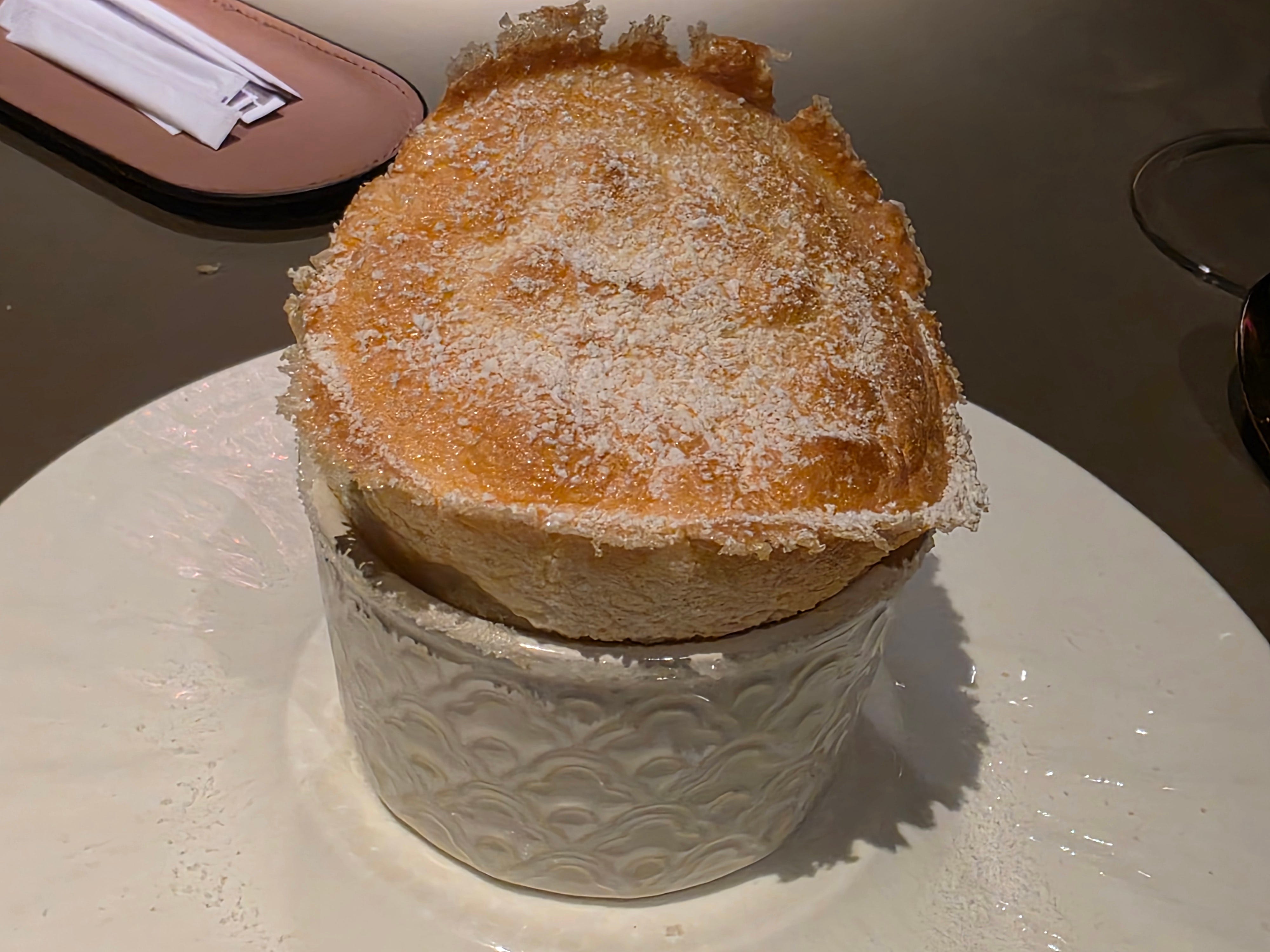 Dessert was one of the fluffiest souffles I’ve ever seen. I’m starting to keep a mental ranking of the best souffles I’ve had, and this one scores high on that list. Not as obviously “perfect” as the amazing browning and regular expansion from Les Amis, or as filling and delicious as the “Ode to Scallop” from Tate Dining Room, but this is probably one of the largest souffles I’ve ever seen, and the amount of rise that it was able to maintain without deflating is remarkable.