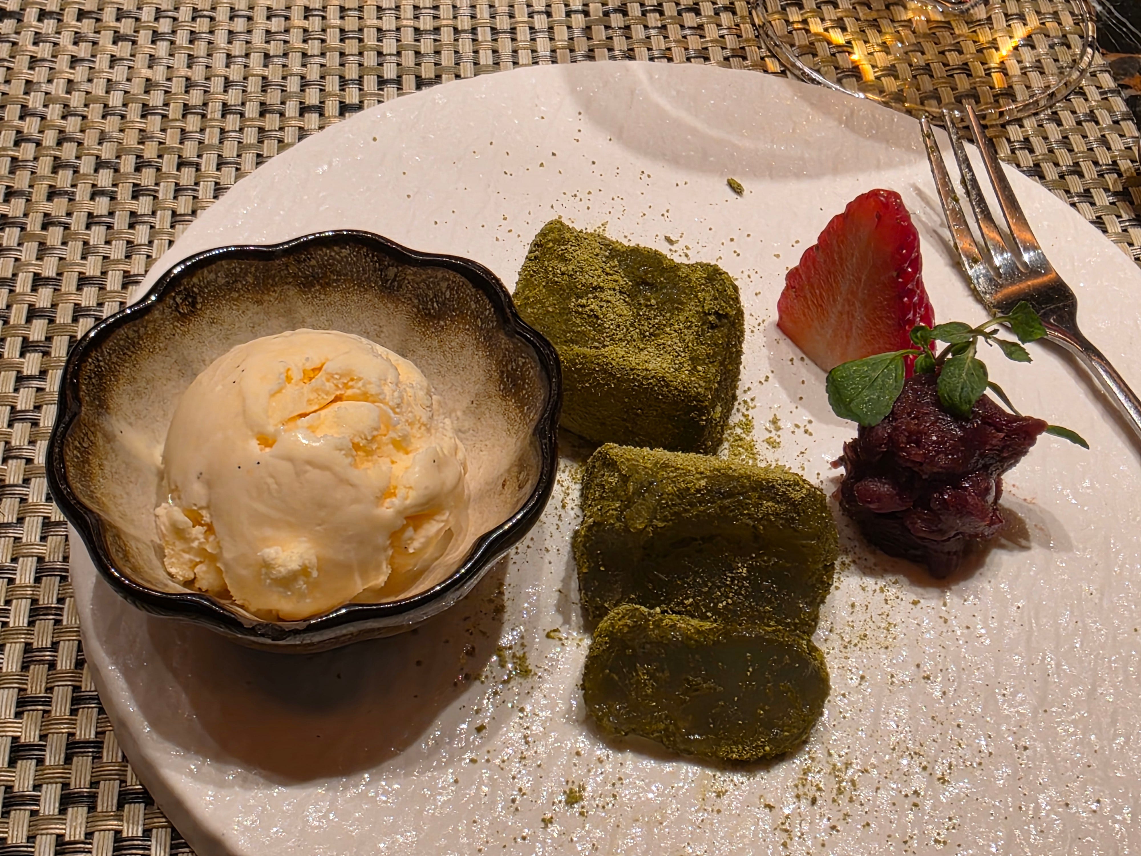 Dessert was red bean paste with mochi and ice cream, a straightforward and pleasant finish without trying to reinvent anything.