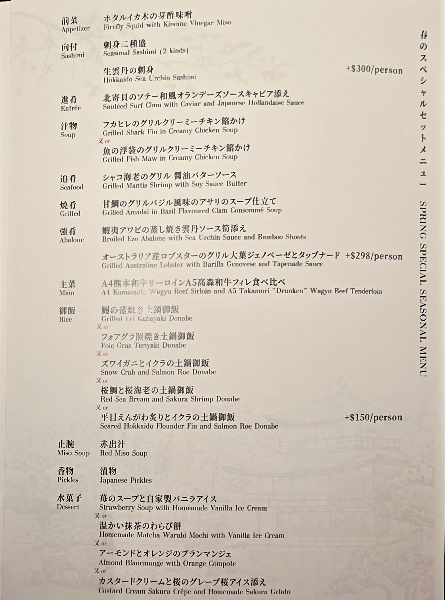 The menu was somewhat intricate on paper, with various supplements and optional upgrades, but in practice there was essentially one tasting menu, with a few decisions around toppings and additions. That worked well enough. At a place like this, too much choice would only get in the way of the pacing.