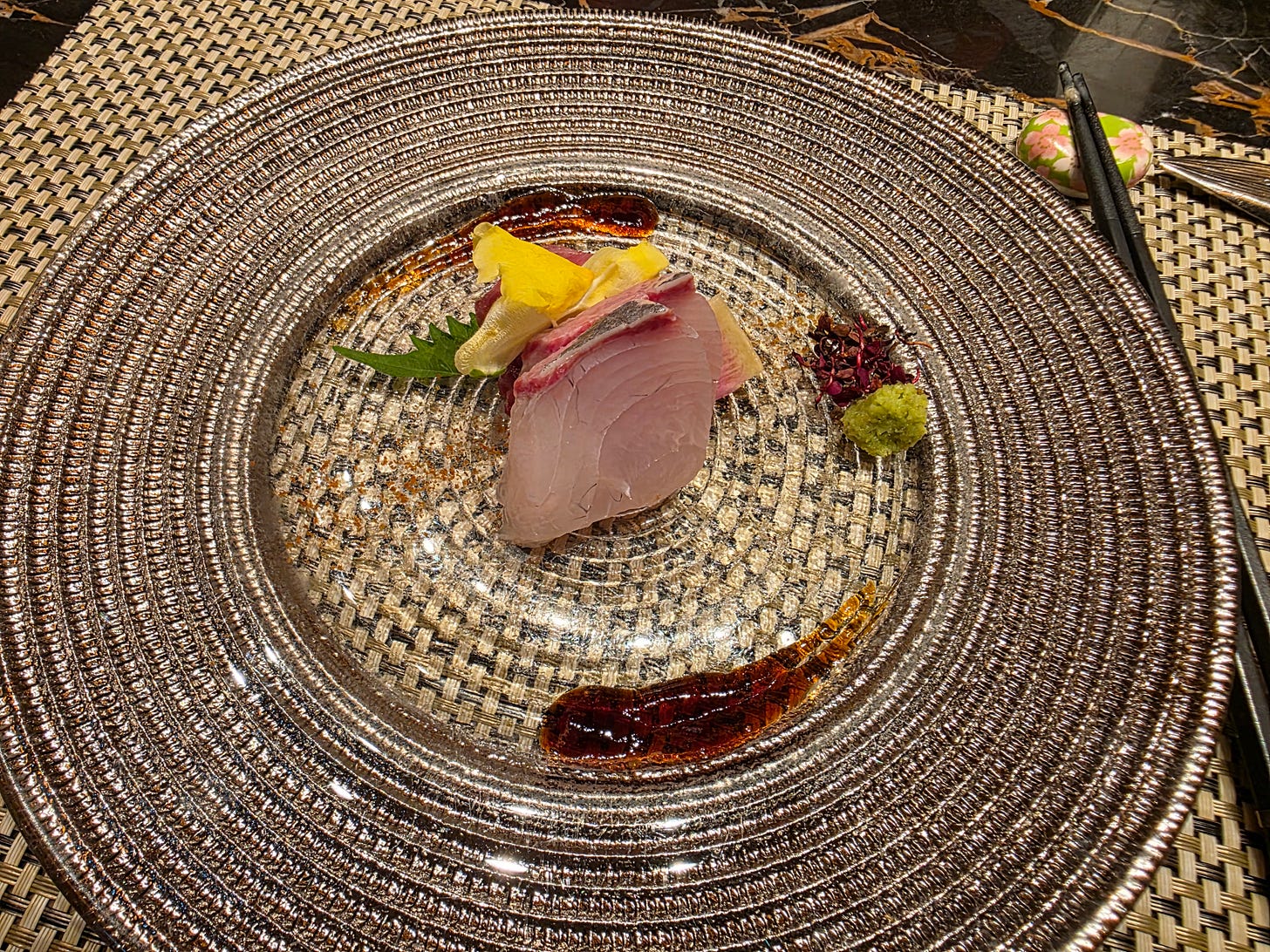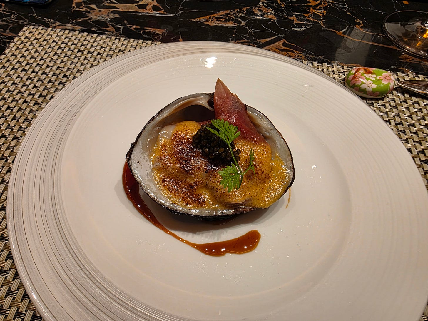 The grilled abalone with bamboo shoots in a uni sauce was well executed, but less memorable than I expected. There was nothing wrong with it at all, but it never quite rose above being competent and luxurious. At this level, that can sometimes read as faint praise.