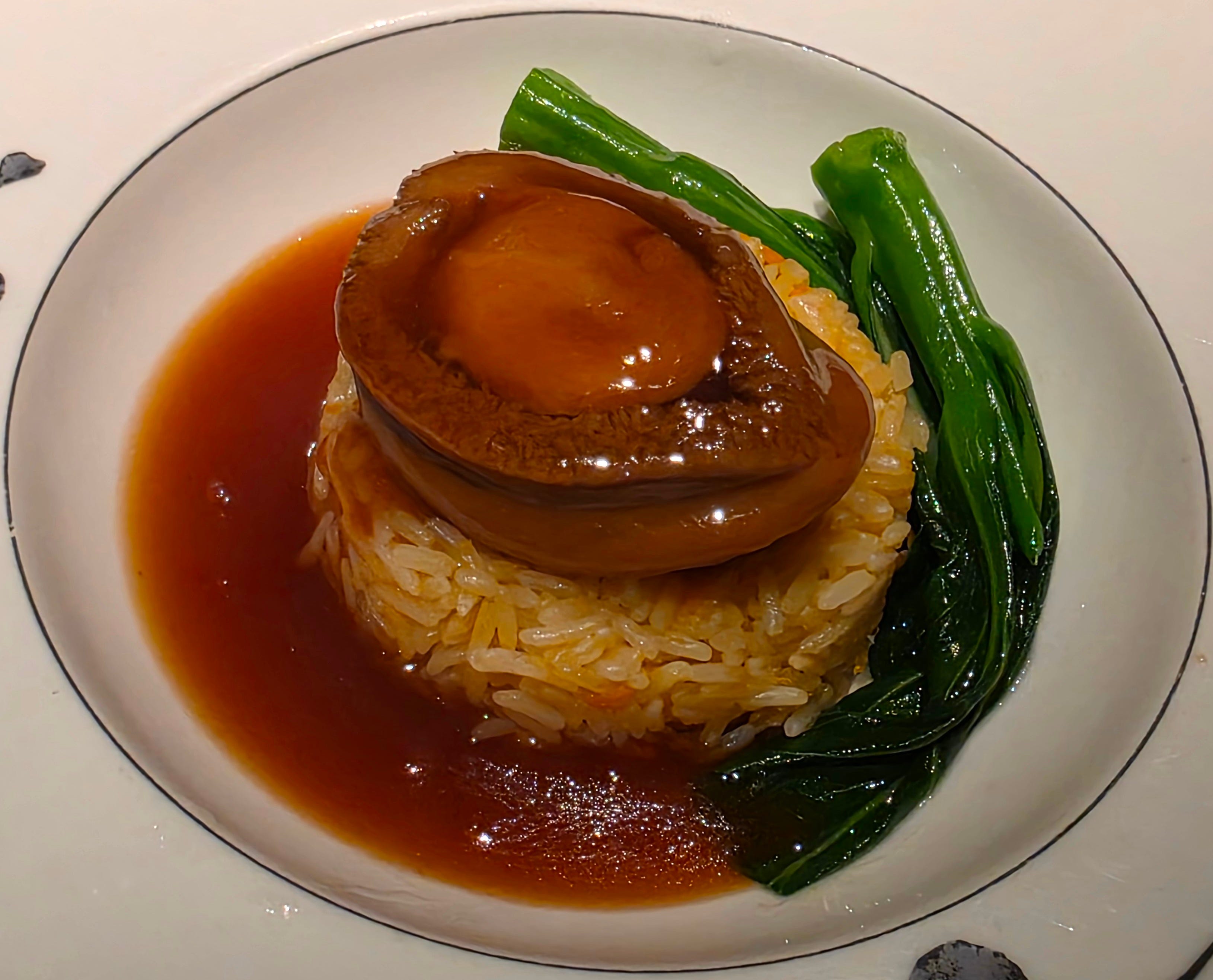 The highlight of the night came at the end of the savoury courses: a large rehydrated abalone served with fried rice in abalone sauce. This was excellent. Properly prepared abalone should be tender without losing its structure, and this one had exactly that quality, rich and deeply savoury, with the sauce carrying all the patient concentration you hope for in a dish like this. The fried rice underneath was not an afterthought either, but a useful delivery mechanism for all that sauce. If you are going to come to a place like Ying Jee Club, this is the kind of dish you want them to make for you.