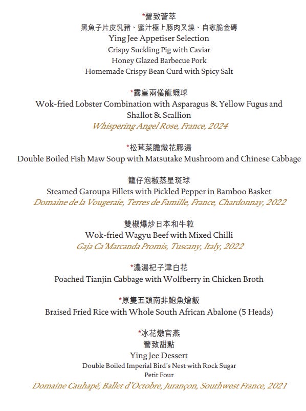 Located in Central, the Ying Jee Club opened in 2017 and earned its first Michelin star within a few months. It soon moved up to two stars, and has held that level ever since. From the beginning, the restaurant’s identity was clear. This was never supposed to be the most radical Cantonese kitchen in town, nor one of those places trying to impress diners with gimmicks or contemporary flourishes for their own sake. The pitch was high-end Cantonese cooking delivered with consistency, polish, and technical control.